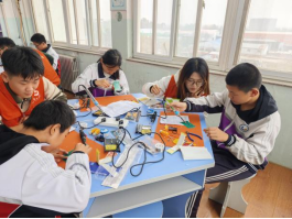 随后,在宣讲团的指导帮助下,学生们迅速投入到焊接电路板、装配小车机械部件的实践操作中。从最初的小心翼翼到逐渐熟练,他们以焊枪为笔,焊锡为墨,在电路板上绘出电路之画。整个过程中,学生们不仅锻炼了动手能力,更在实践中体会到了科学的魅力和乐趣。